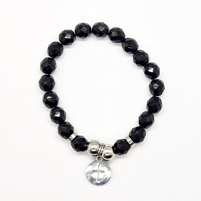 Stainless steel accent beads and a delicate cutout cross charm complete the look—sleek, modern, and made to be worn on repeat. Crafted on our durable stretch cord that keeps its shape, this beauty looks luxe but handles everyday wear with ease.