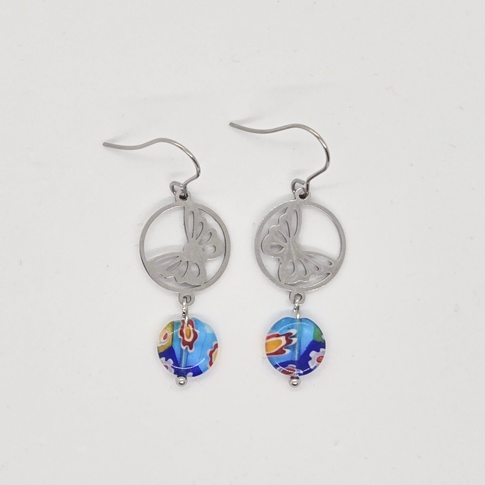 Beautiful earrings to remind you that we transform through life's challenges, emerging stronger and more beautiful than before. Made with stainless steel and millefiori glass but not heavy.