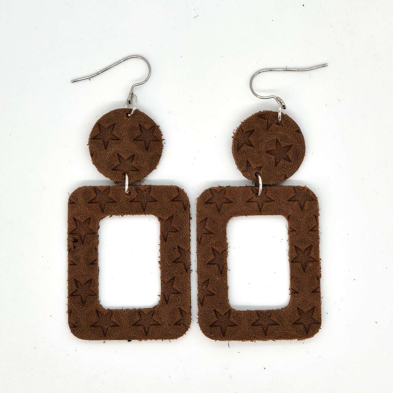 Charli will be your new favorite pair of statement earrings, and they are comfortable too. Crafted with high quality, lightweight leather and non-tarnish stainless steel ear wires.