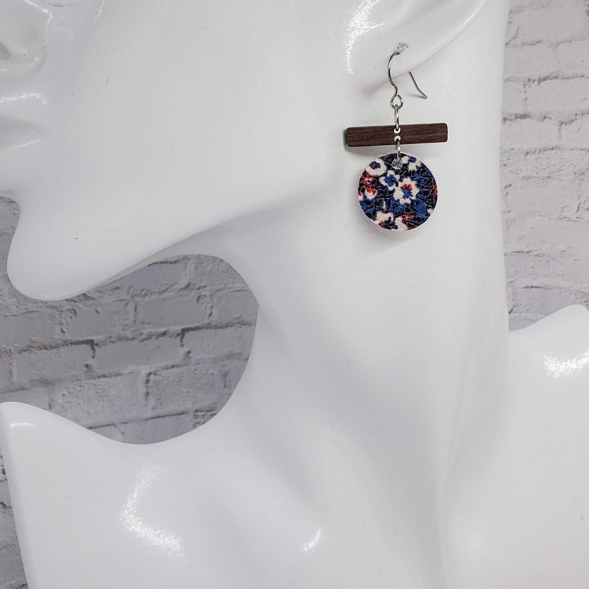 The combination of natural wood and leather create a timeless style you will wear on repeat. A narrow and lightweight wood bar connects a .75" leather circle to our stainless steel ear wires. Design measures approximately 1" from bottom of ear wire.