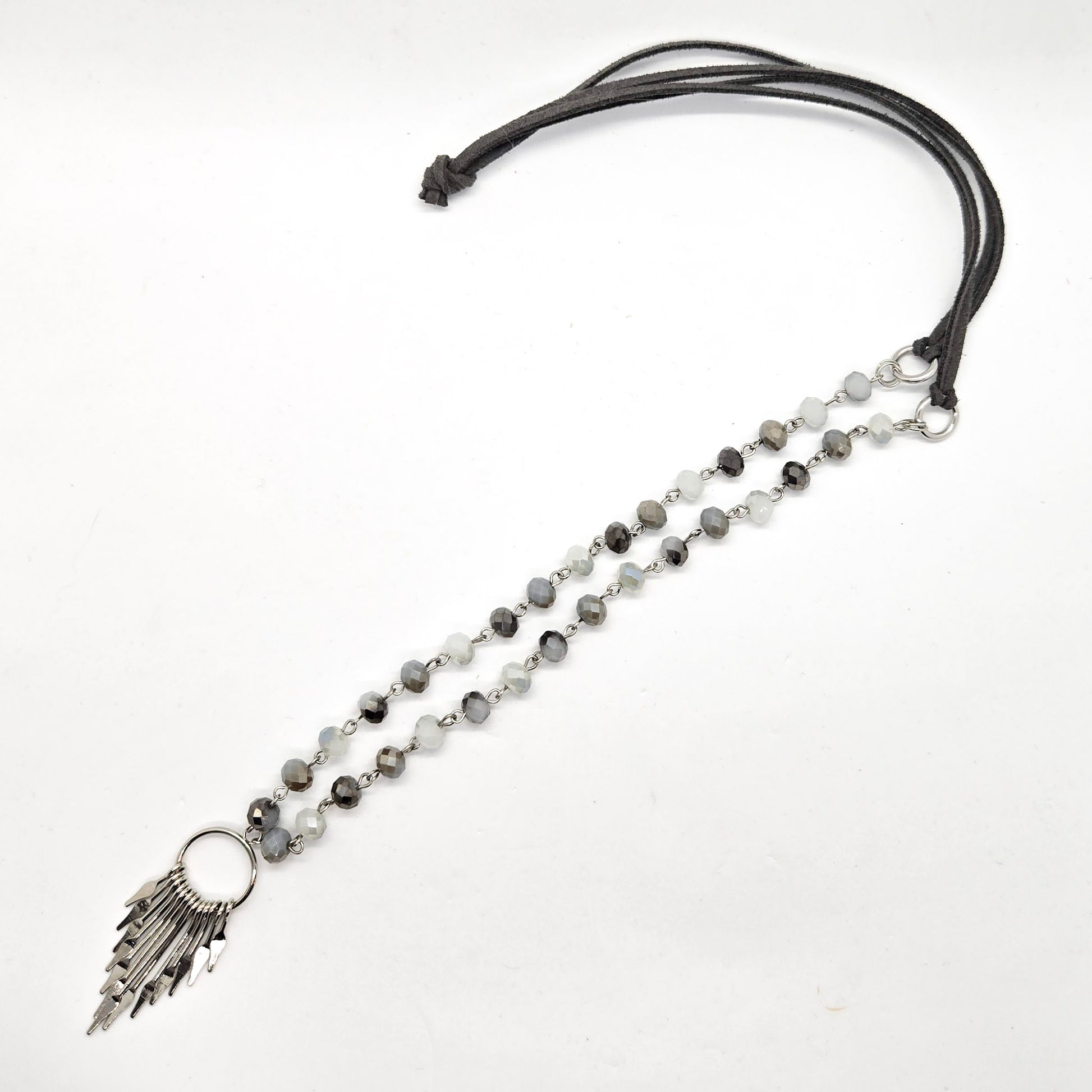 Elevate your everyday style with this effortlessly chic beaded chain necklace. Faceted beads in soft, moody shades of gray catch the light beautifully, creating a subtle shimmer with every step. A smooth microsuede cord adds a touch of texture, while the silver-plated pendant brings the perfect finishing detail.
