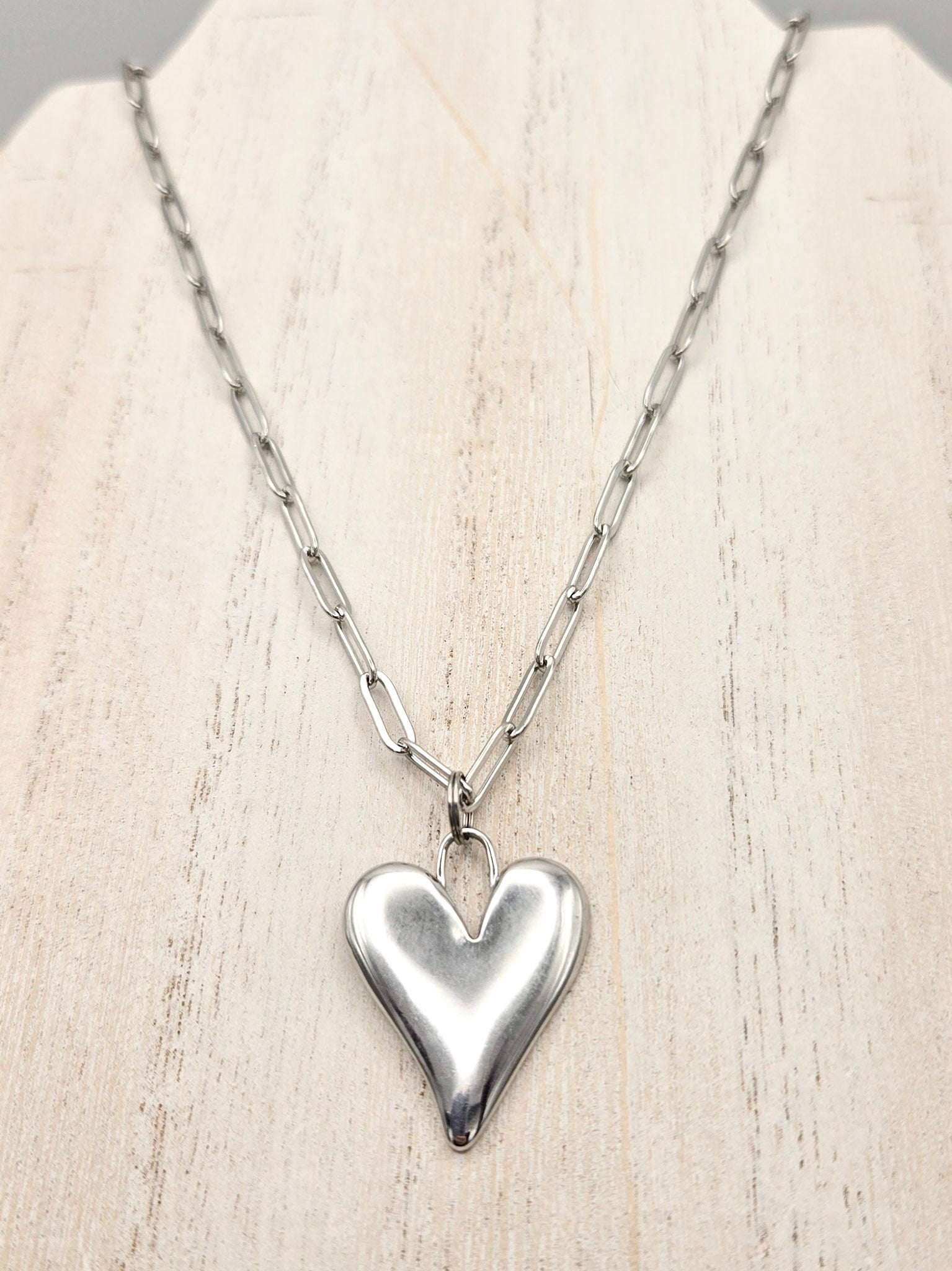 Sweet, simple, and effortlessly modern—this stainless steel heart necklace is the perfect everyday piece. A sleek heart-shaped pendant hangs from a stylish stainless steel paperclip chain, creating a look that’s both timeless and on-trend.