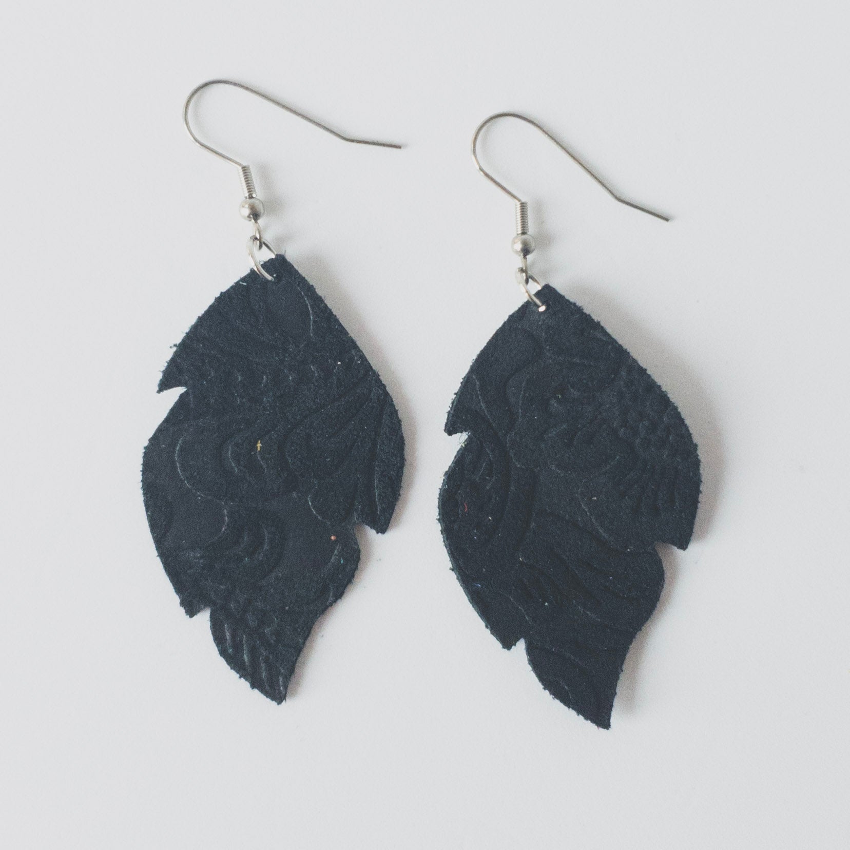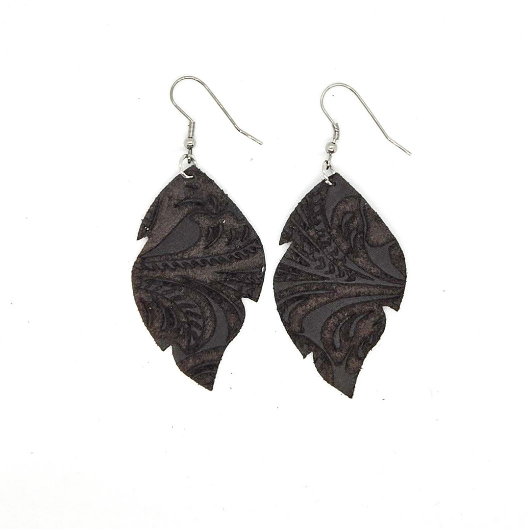 Celebrate nature in these stunners. Leaf shaped earrings make the perfect fall accessory, and can even be worn year round. Made with non-tarnish and hypoallergenic stainless steel ear wires and leather (L), cork backed with leather (C) or vegan/faux leather(V). Measures approximately 1.5” from bottom of earwire.