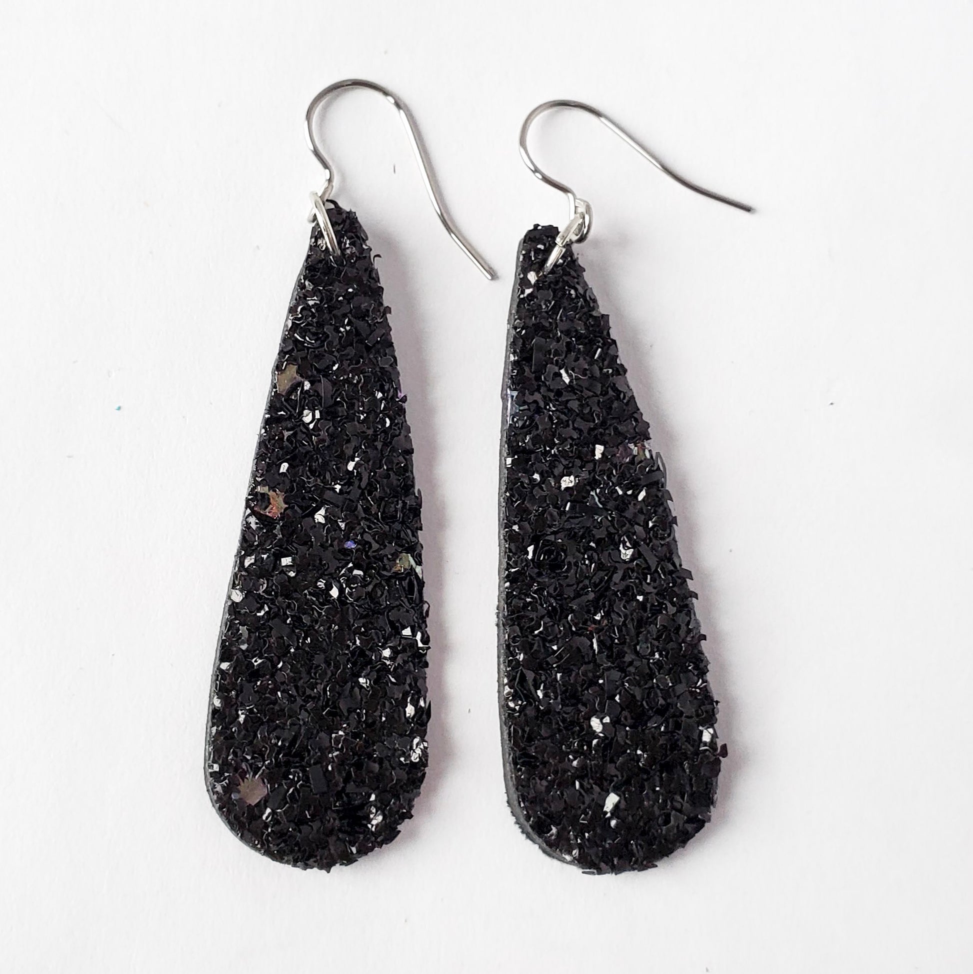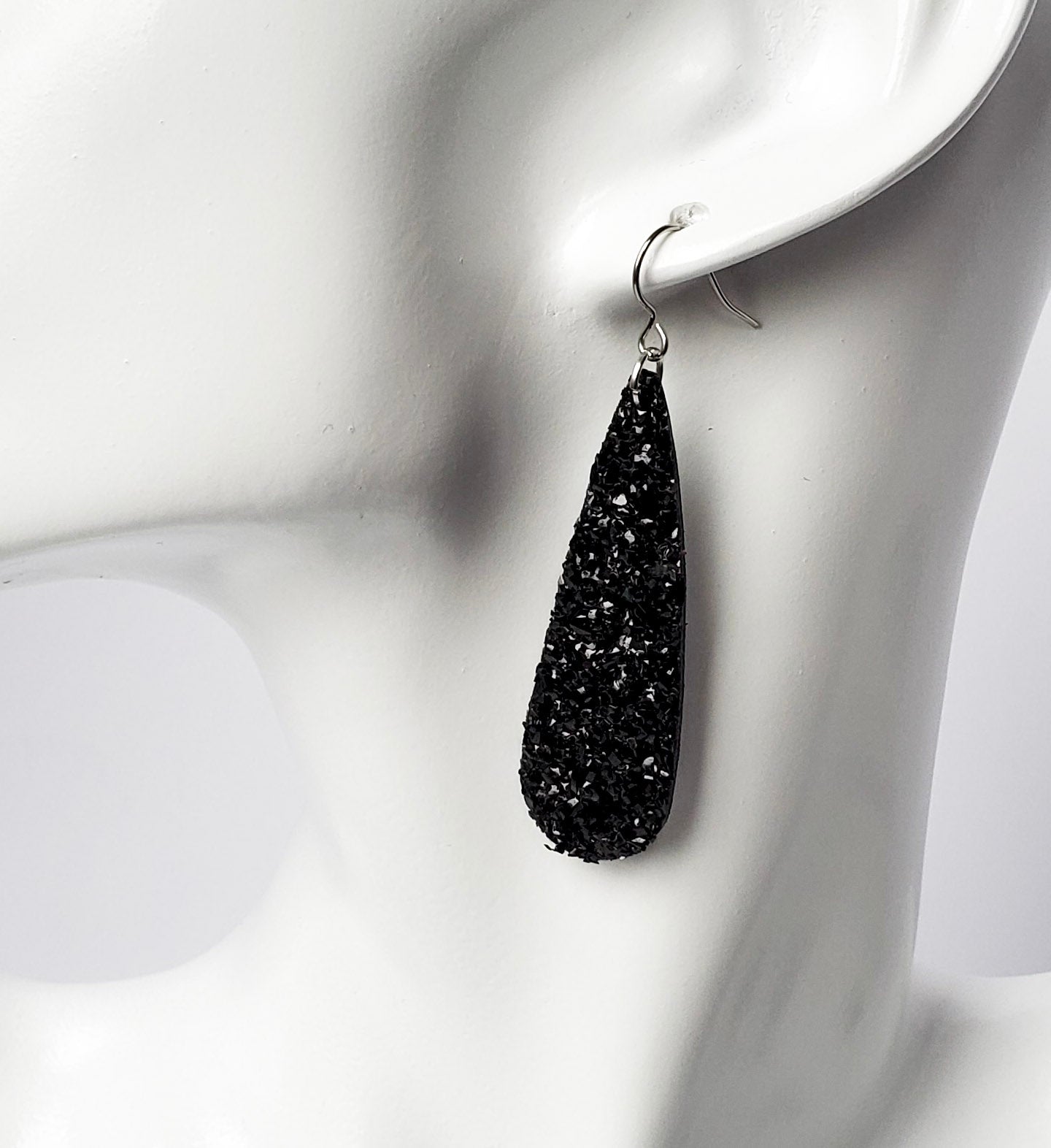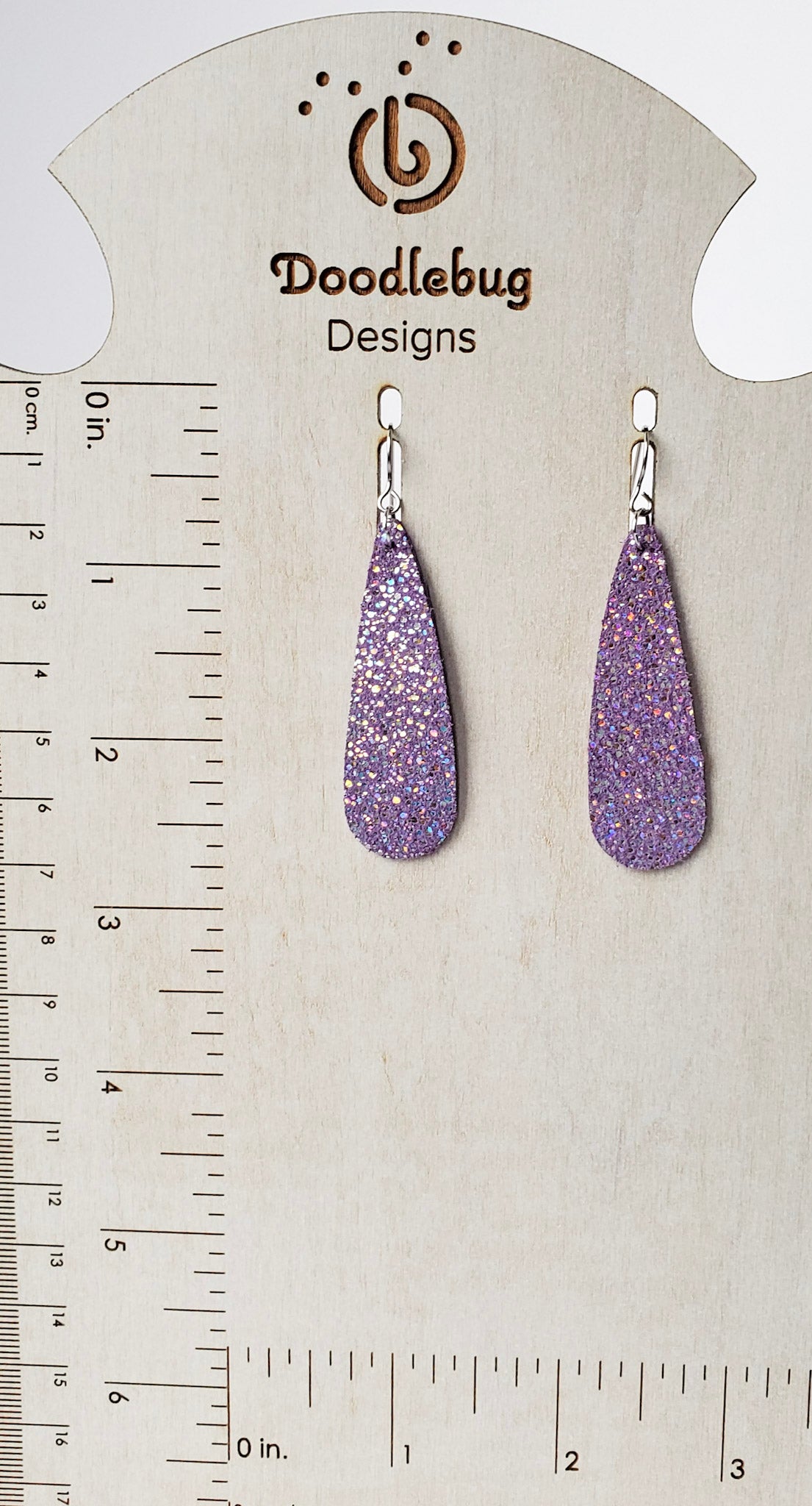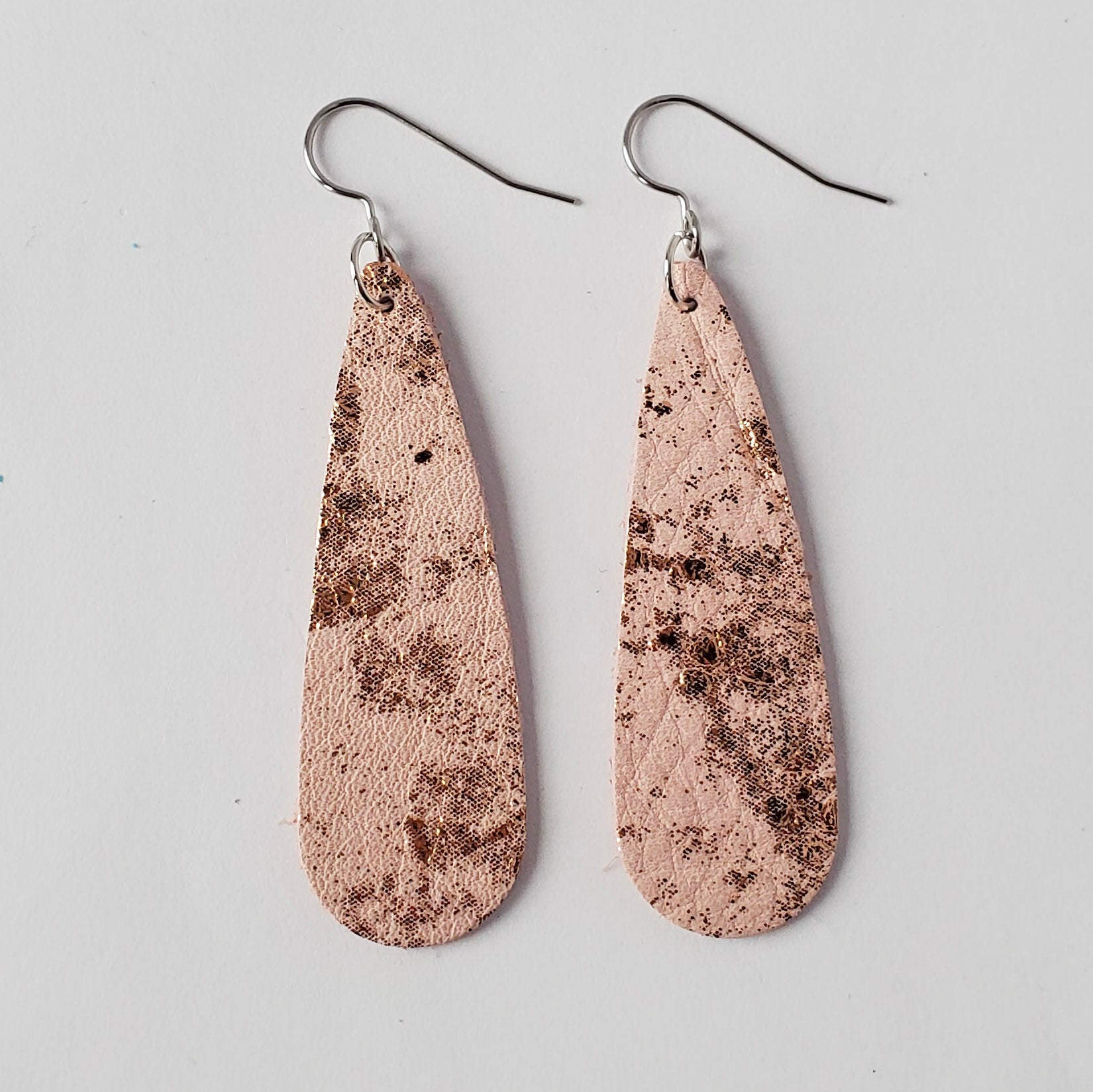 Elongated teardrop leather earrings make an elegant, but fun, statement. Genuine leather in solids and prints measures approximately 2” long and is finished with non-tarnish stainless steel ear wires.