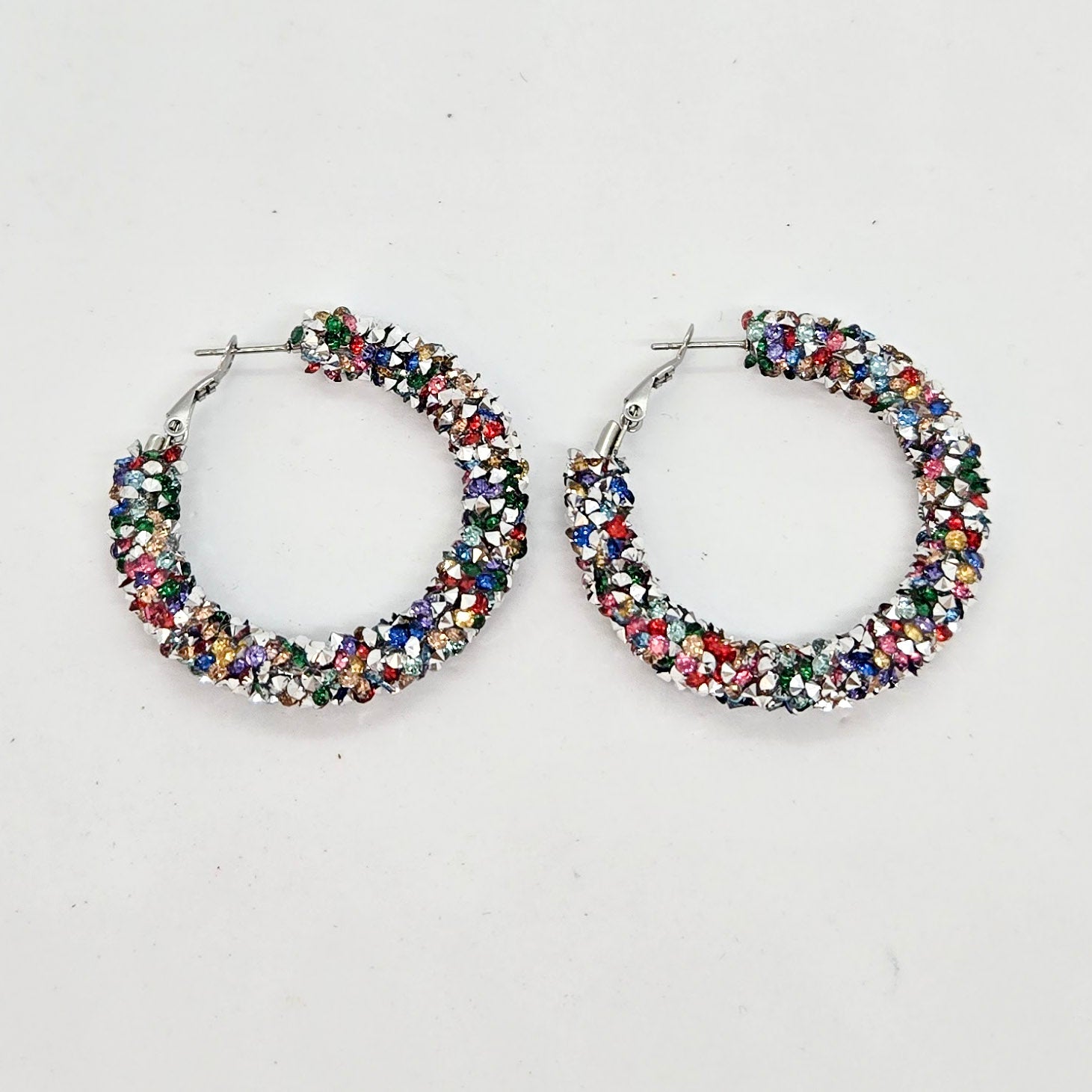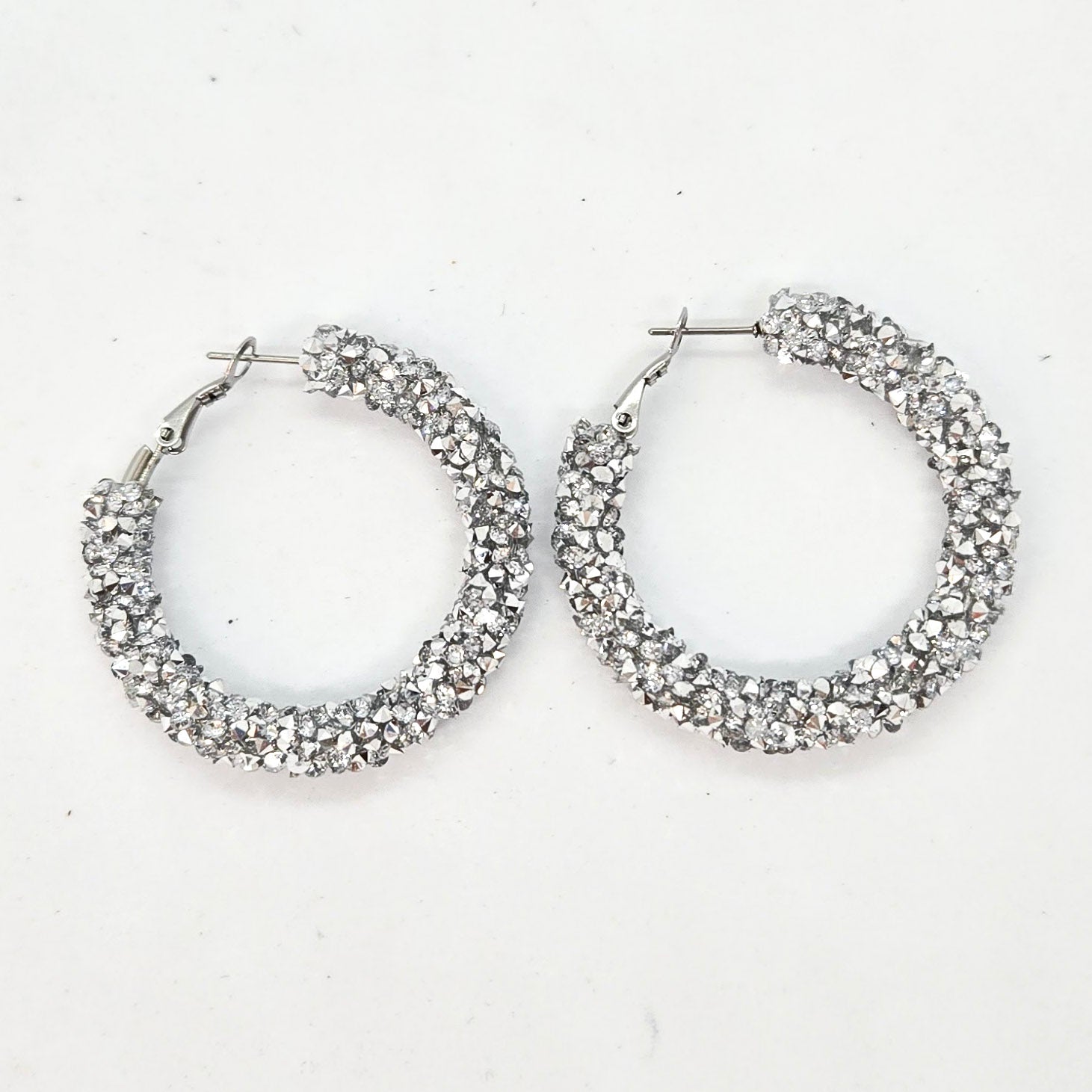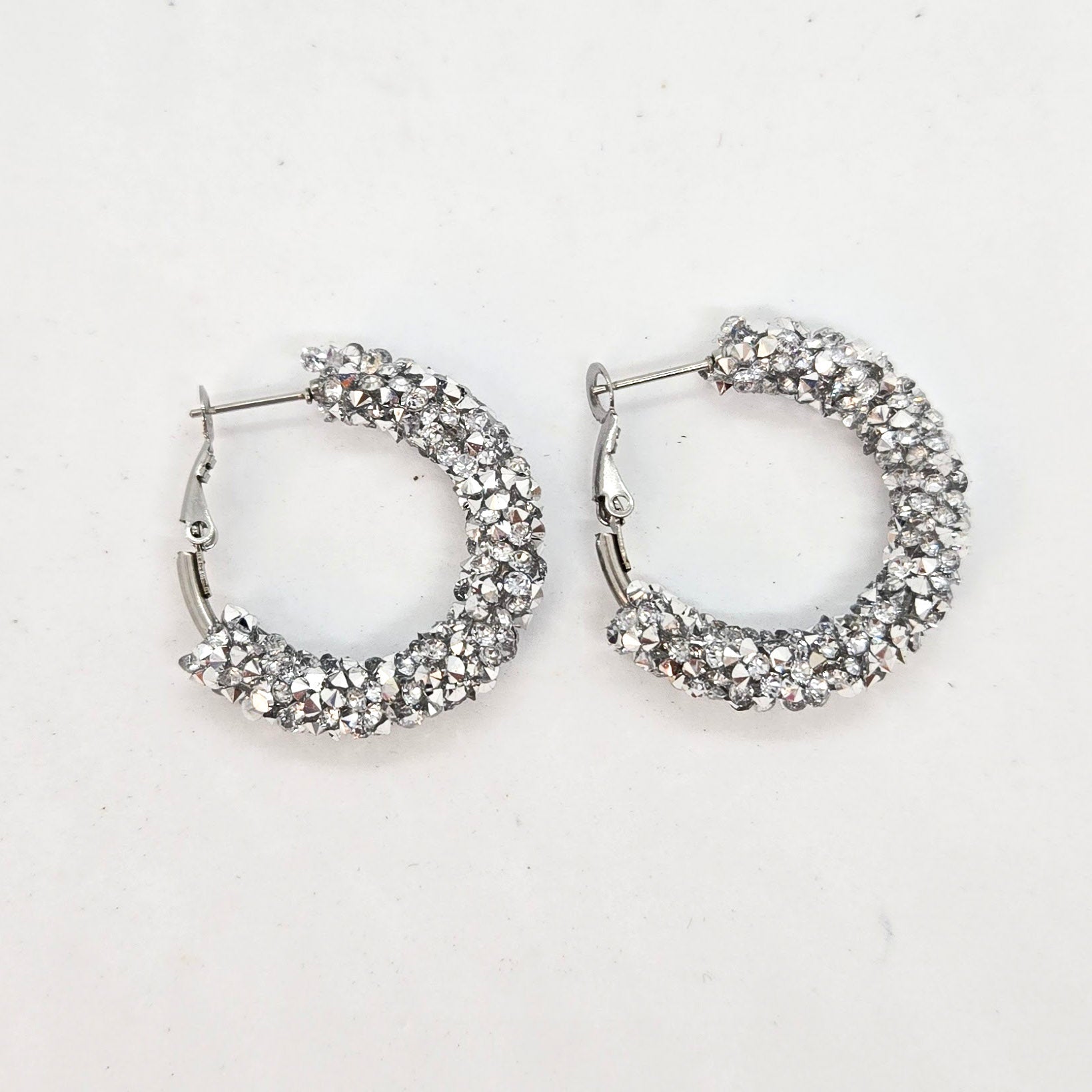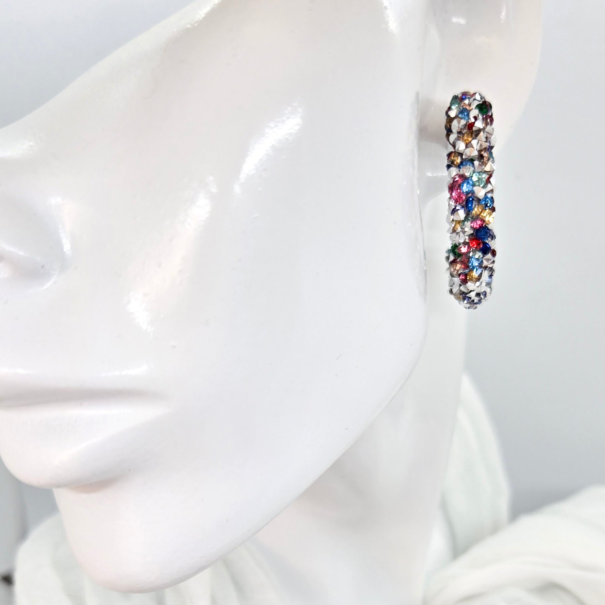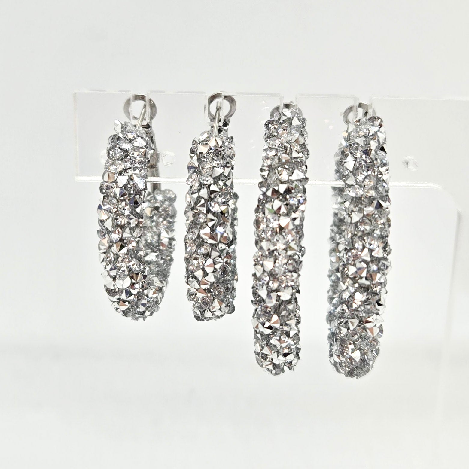 Add some sparkle to your outfit with these gorgeous hoops. Crystal tubing on stainless steel hoops make for a stunning, and lightweight combo.