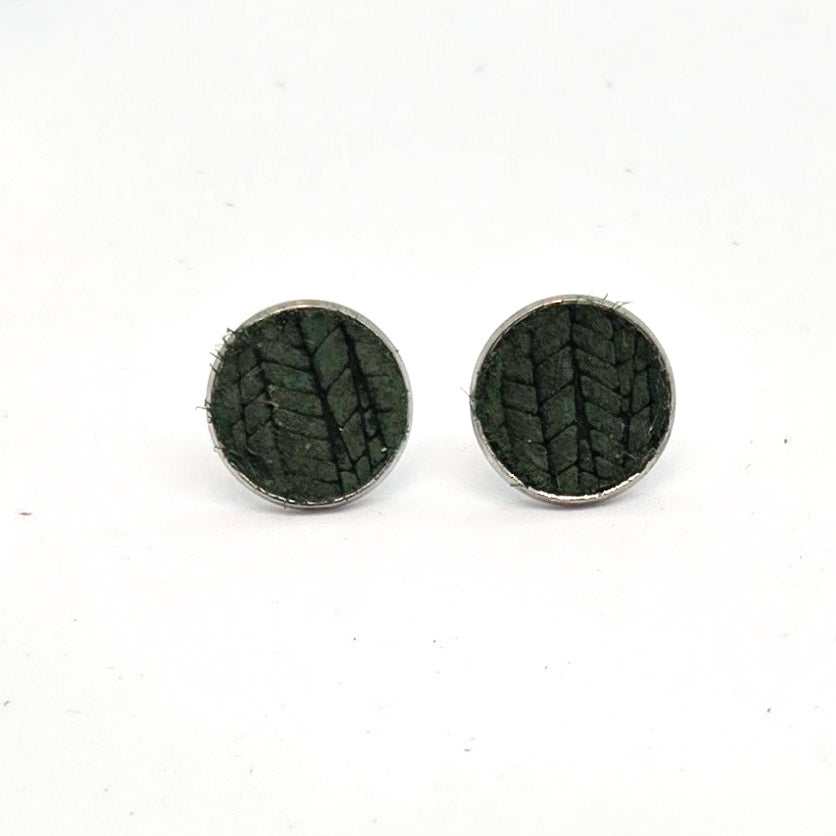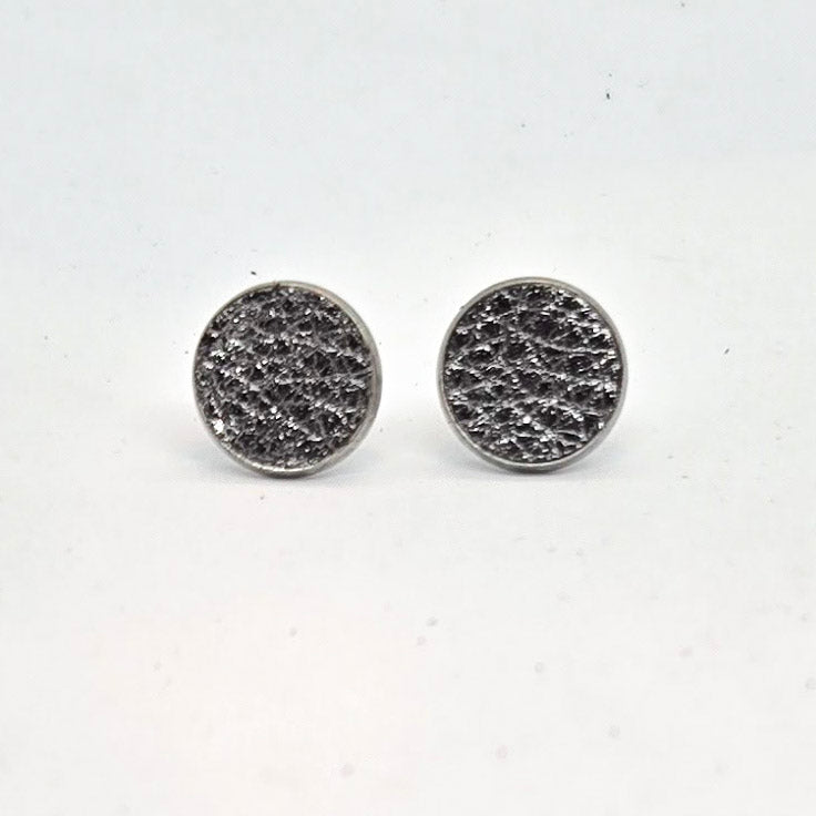 Classic with a twist is a good description of these earrings and look equally good with a t-shirt or sweater. 12 mm leather circles are framed by stainless steel and finished with stainless steel posts.